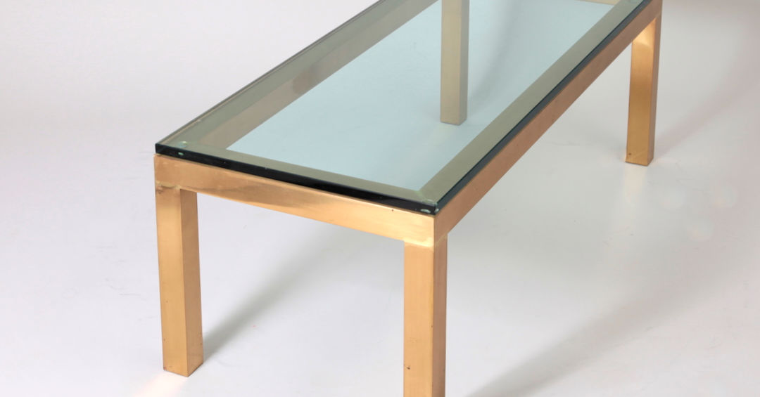 Rectangular brass base, glass top.